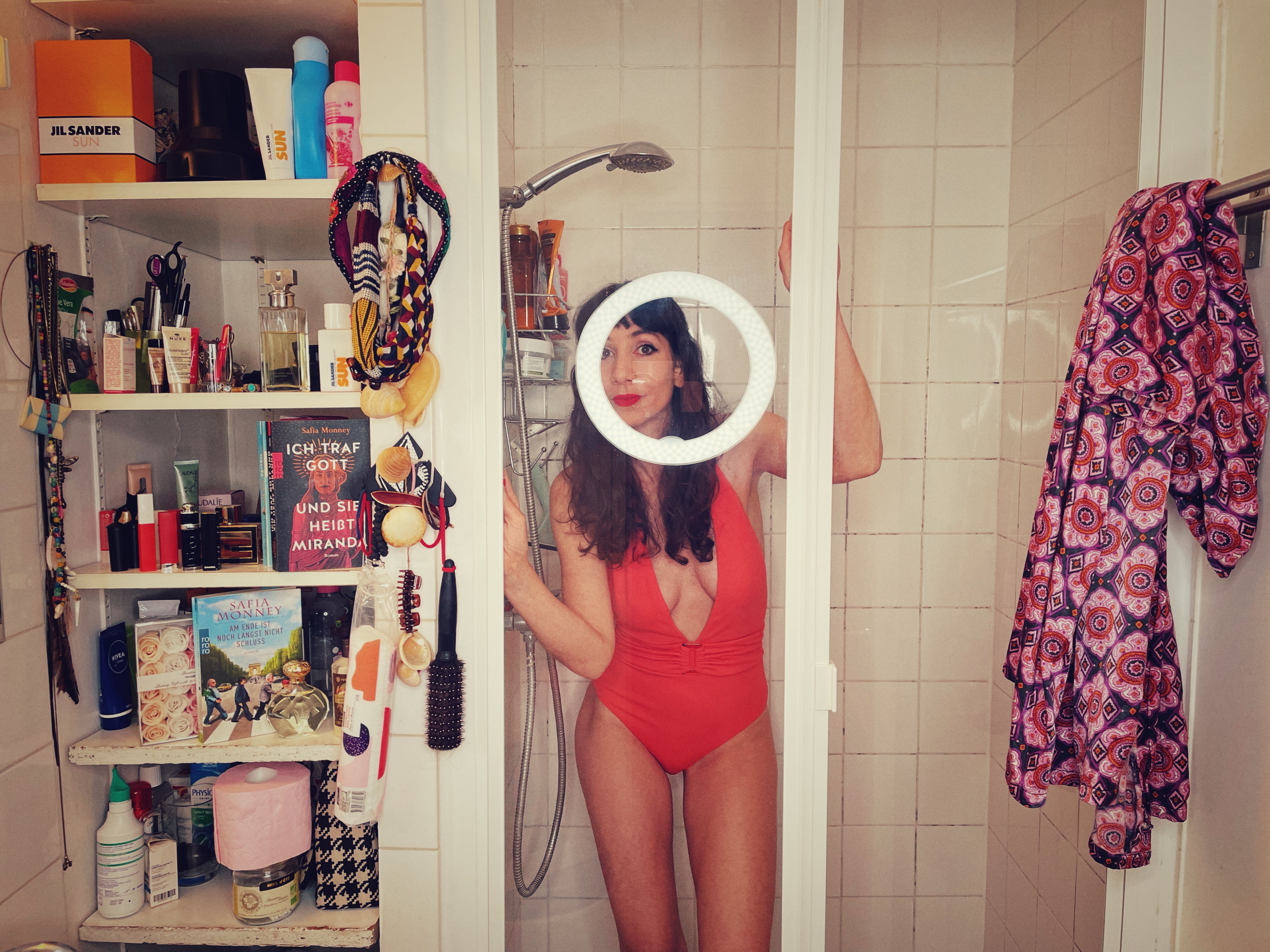 Die Badeanzug-Lesung ist die Inszenierung meiner Romanheldin Miranda, einer freien, selbstbewussten Frau, die voll zu ihrer Weiblichkeit steht. Dazu gehörte für mich auch, etwas auszuprobieren und mich zu trauen, meine Kreativität voll auszuschöpfen.